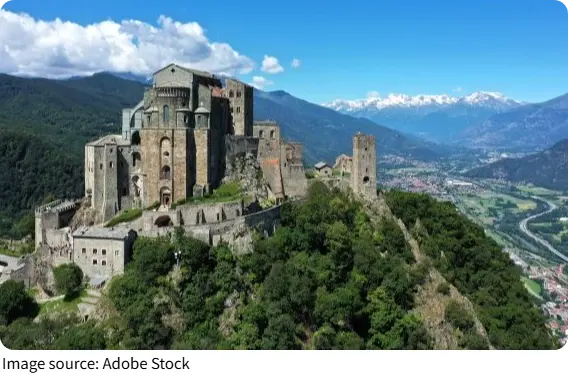 Perched high on a rocky peak above the Susa Valley stands one of northern Italy's most fascinating historical landmarks—the Sacra of Saint Michele.