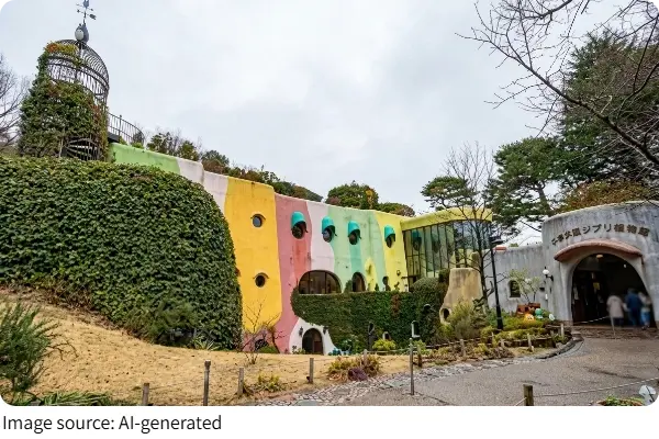 Walking through the museum feels like wandering through a dream. The building itself is designed to resemble a whimsical, storybook house, with winding staircases, vibrant murals, and enchanting decor that evokes the spirit of Ghibli's films. The museum's architecture, lush outdoor gardens, and breathtaking views make it a place where you can lose track of time, getting lost in a world of imagination.